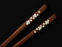 Sehr schöne japanische Essstäbchen aus Grandillo von Yumekobo. Die Essstäbchen wurden von Zogan-Künstlern mit feinen Perlmutt-Einlagen verziert. Yumekobo gilt als eine der wenigen Manufakturen in Japan, die die traditionelle Dekorationstechnik Zogan für feine, edle Gebrauchsgegenstände wie Essstäbchen einsetzen und perfekt beherrschen. Die verwendeten Hölzer sind von ausgesuchter Qualität und werden ausschließlich in traditioneller Handwerkskunst bearbeitet. Alle eingesetzen Materialien sind pure Natur. Die sehr langlebigen, edlen Esstäbchen Sakura