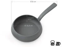 Maße ca.: Ø 21,1 cm, L inkl. Griff 37,8 cm, H mit Deckel 10,5 cm, Boden Ø 16,4 cm