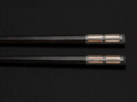 . Diese Essstäbchen wurden von erfahrenen Kunsthandwerkern in Japan hergestellt. Die Färbung ist ein dunkles Braun-Schwarz, verziert sind die Essstäbchen am Kopf mit Holzintarsien. Mit ca. 17 g gehören sie zu den absoluten Leichtgewichten, acht von Hand geschliffene Flächen geben guten Halt und erleichtern die Handhabung. Sie laufen in einer feinen 2,5 mm Spitze aus. Die Manufaktur Marunao, gegründet 1939, ist dem Werkstoff Holz seit ihren ersten Tagen eng verbunden. Natürlichkeit, bestes Material und höchstmögliche Verarbeitungsqualität sind gelebte Philosophie. Nur echte, authentische Leidenschaft für die Schönheit der Natur kann diese Begeisterung bei Kunsthandwerkern auslösen, die förmlich zu spüren ist, wenn man die Stäbchen in die Hand nimmt. Die Essstäbchen werden in der passenden, edlen Originalverpackung geliefert.