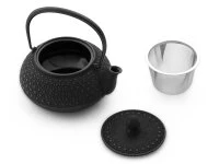 Klassische japanische Teekanne von Iwachu, dem weltweit führenden Hersteller von Teekannen aus Gusseisen. Hergestellt im qualitativ einzigartigen Nanbu-Tekki Verfahren. Dieses Verfahren mit den Wurzeln in der japanischen Teezeremonie, gehört bei Iwachu seit über 100 Jahren zur Firmen-Tradition. Echte Handarbeit von erfahrenen Kunsthandwerkern. Die Teekanne ist innen emailliert und mit einem rostfreien Edelstahlsieb ausgestattet. Ihre Größe ist ideal für 3 – 6 Tassen Tee pro Aufguss. Alle Produkte von Iwachu bestehen aus Naturmaterialien und sind auf Lebensmittelechtheit und Unbedenklichkeit geprüft und getestet.