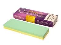 Die Naniwa Kombi Schleifsteine mit jeweils zwei Körnungen sind ein preiswerter und doch qualitativ hochwertiger Einstieg. Sie bestehen aus Schärfsteinen der Serie Super Stone. Die Serie Naniwa Super Stone sind als Wasserschleifsteine bekannt, die besonders strapazierfähig, schnell einsetzbar und sehr effizient sind. Ein kurzes Eintauchen in Wasser genügt und der Schleifstein kann verwendet werden. Die Schleifzeit ist gering, da die Steine eine hohe Konzentration von abrasivem Material haben. Besonders für feine, empfindliche Schneiden aus hartem Kohlenstoffstahl sind diese Schärfsteine sehr empfehlenswert. Das Schleifgefühl ist sehr sanft, die Abnutzung der Steine äußerst gering, mit Papier können die Oberflächen leicht gereinigt und wieder geöffnet werden. Super Stone werden diese Wasserschleifsteine auch deswegen genannt, weil man mit ihnen eine unschlagbar schön polierte Kante erzielen kann. Gleichzeitig bieten die Schleifsteine dieser Serie ein sehr gutes Preis-Leistung-Verhältnis. Gerade wenn der Messerliebhaber es vorzieht mit relativ geringen Übergängen in der Körnung zu arbeiten, kann es sinnvoll sein, mit Kombi Schleifsteinen zu arbeiten. So kann man zum Beispiel sehr günstig ein breites Spektrum von Körnungen abdecken, wenn man die Kombination 400/1000, 3000/5000 und 8000/10000 wählt.