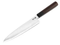 ist sehr hartes und äußerst beständiges Palisanderholz. Die Griffe der Serie sind klassisch rund ausgeführt, wie bei traditionellen japanischen Kochmessern, die eher Gefühl als Kraft bedürfen, üblich.