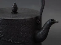Sehr traditioneller japanischer Nanbu-Tetsubin (iron kettle) von Iwachu, Morioka, der nur in geringen Stückzahlen erhältlich ist. Dieser Tetsubin wurde von einem alten Meister überwiegend in Handarbeit gefertigt. Er ist für offenes Feuer, Gas- und Elektroherde geeignet, allerdings vom Hersteller nicht für Induktionsherde frei gegeben. Sein traditionelles, feines Design erzählt japanische Geschichte. Tetsubin von Iwachu zeichnen sich durch die sehr hohe, kontrollierte Materialqualität und die sorgfältige Produktion aus. Die Innenfläche ist mit dem traditionellen Einbrenn-Verfahren Kama-Yaki behandelt, was die Rostbildung reduziert aber vollständig durchgängig für das wertvolle Eisen und die Mineralien ist. Der Tetsubin wird in vielen Arbeitsschritten aufwändig in Handarbeit hergestellt. Teemeister kochen in Tetsubin das Wasser für den Tee der Teezeremonie auf offenem Feuer. Das in Tetsubin gekochte Wasser wird weicher, gewinnt aus dem Kessel Eisen und verbessert den Geschmack von Tee, Kaffee oder anderen Getränken. Immer mehr anspruchsvolle Teetrinker benutzen für ihren täglichen Teegenuss einen Tetsubin, bevorzugt einen Nanbu-Tetsubin aus Japan.