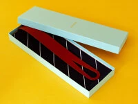Baumwolltuch, 70 x 70 cm, das sich rasch zur schönen Tasche verwandelt. Die Idee ist in Japan uralt, neu ist der Klipp, der es leicht macht, eine Tasche aus dem